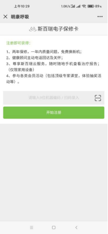 2.然后進(jìn)入電子填寫界面,可以手動輸入機身編碼或者掃一掃機身上的二維碼,點擊開始注冊;(圖二)