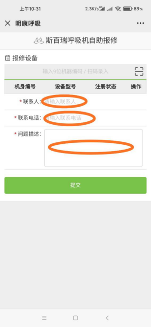 2. 輸入設(shè)備編號(hào)或掃描機(jī)身上二維碼,填寫里面信息及故障現(xiàn)象提交即可。