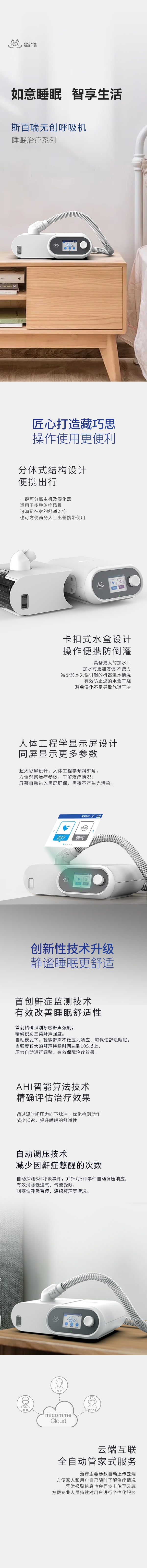 首創(chuàng)鼾癥監(jiān)測(cè)技術(shù),AHI智能算法技術(shù),分體式結(jié)構(gòu)設(shè)計(jì),人體工程學(xué)顯示屏設(shè)計(jì)。