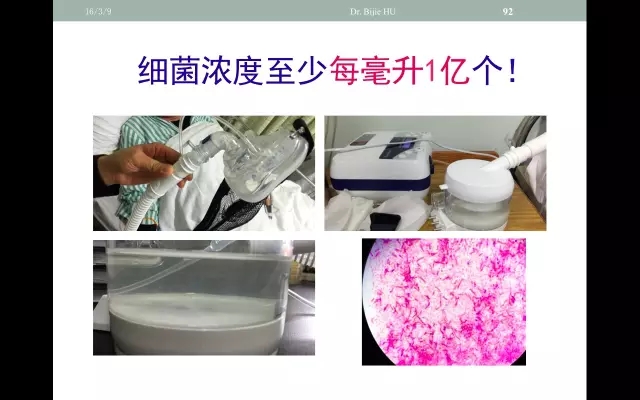 患者因為重癥肌無力,進行無創(chuàng)機械通氣,但霧化水的容器,近2個月從未進行消毒。觀察霧化罐的水,竟然漂浮好多的棉絮狀物,頓覺問題的嚴重性。