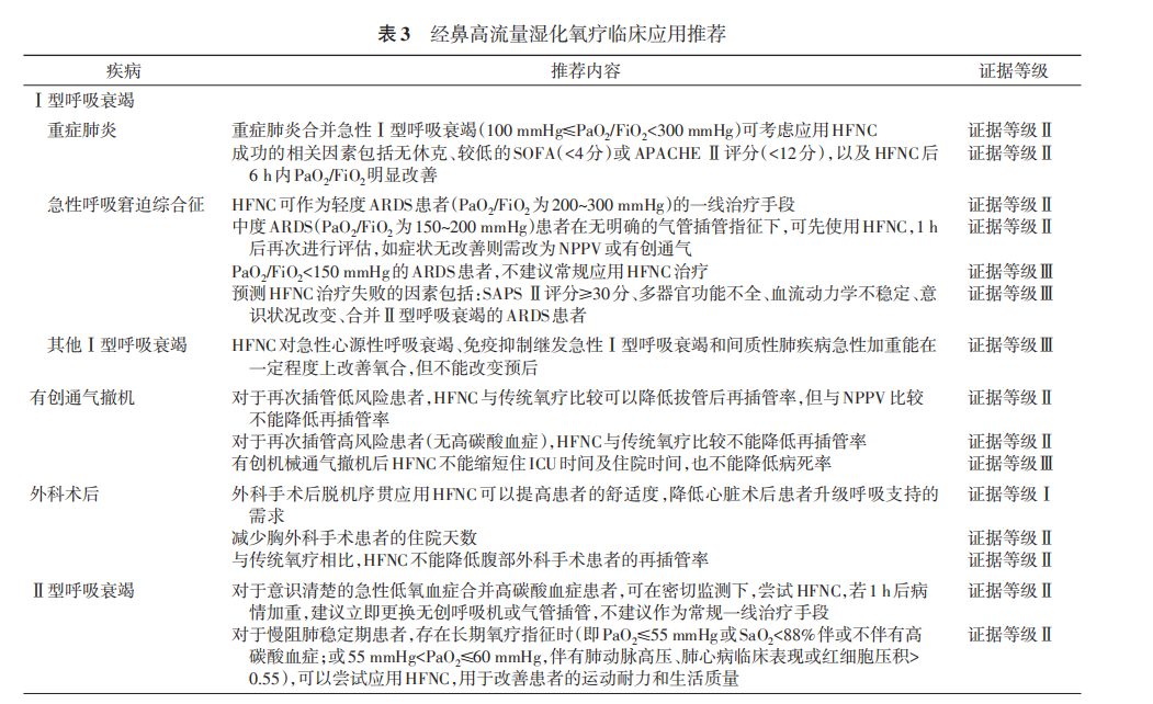 HFNC臨床應(yīng)用推薦建議見(jiàn)表3。