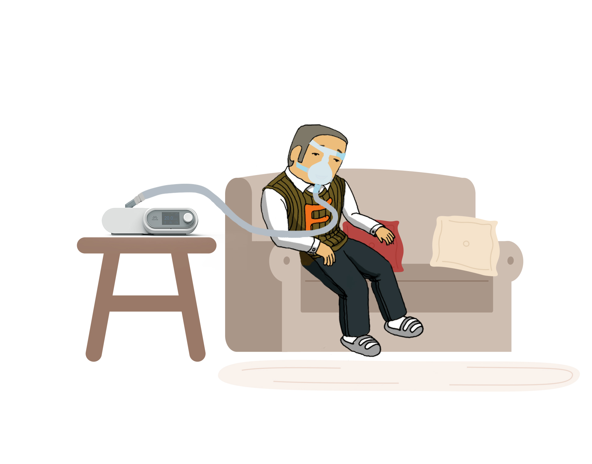 我叫黃**,今年66歲,睡覺打鼾已經(jīng)是老毛病了,鼾聲特別大,半夜總被憋醒,伴侶也深受我的鼾聲折磨,難以入睡,同時也非常擔(dān)心我反復(fù)憋醒的情況對身體有害。去醫(yī)院看了后,醫(yī)生說我是患上了睡眠呼吸暫停低通氣綜合征,需要帶呼吸機。正好我兄長之前也有這樣的情況,也是在使用無創(chuàng)呼吸機后,效果改善了很多,不僅不打鼾了,而且整個人精氣神好了很多。正因為身邊有這樣真實的例子,所以認識到睡眠問題是可以改善的,于是向兄長詳細咨詢了一番。